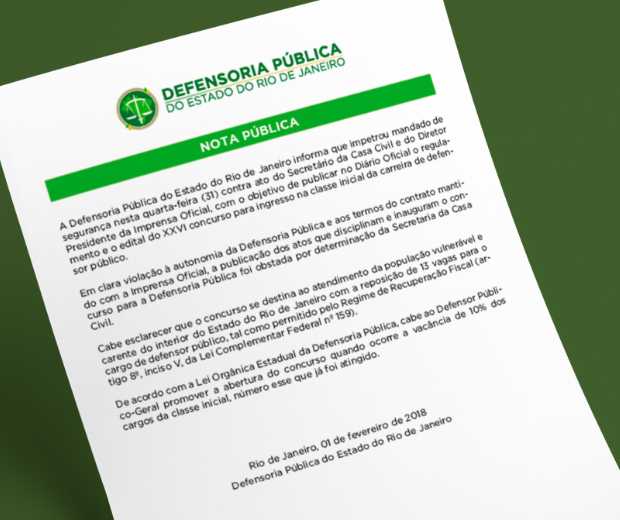 DPRJ informa que impetrou mandado de segurança nesta quarta-feira (31) contra ato do Secretário da Casa Civil e do Diretor Presidente da Imprensa Oficial