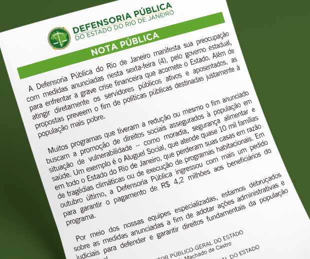 A Defensoria Pública do Rio de Janeiro manifesta sua preocupação com as medidas anunciadas nesta sexta-feira (4), pelo governo estadual.
