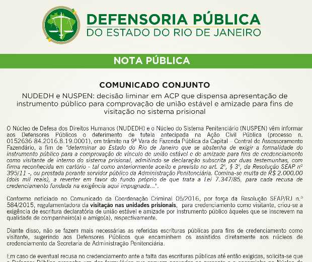 Confira a nota pública do Nudedh e Nuspen sobre a decisão liminar em ACP que dispensa apresentação de instrumento público para comprovação de união e amizade.